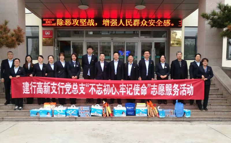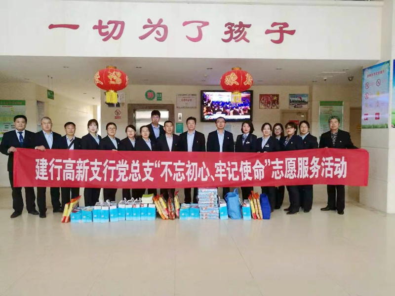 11月23日,威海建行高新支行党总支来院开展“不忘初心、牢记使命”志愿服务活动,为孩子们带来了生活用品和学习用品,在院工作人员的带领下看望了康复区、特教区和活动区的儿童。