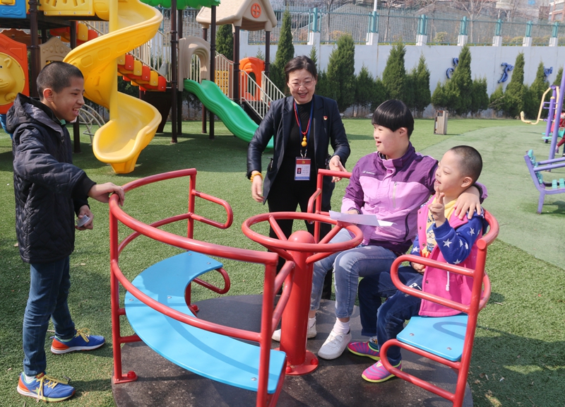 党员们和孩子们一起荡秋千、玩滑梯、坐转椅、转呼啦圈,不仅增进了和孩子们之间的感情,孩子们的身体协调能力也得到了很大的锻炼,党员们也教导孩子在游戏中学会如何保护自己。