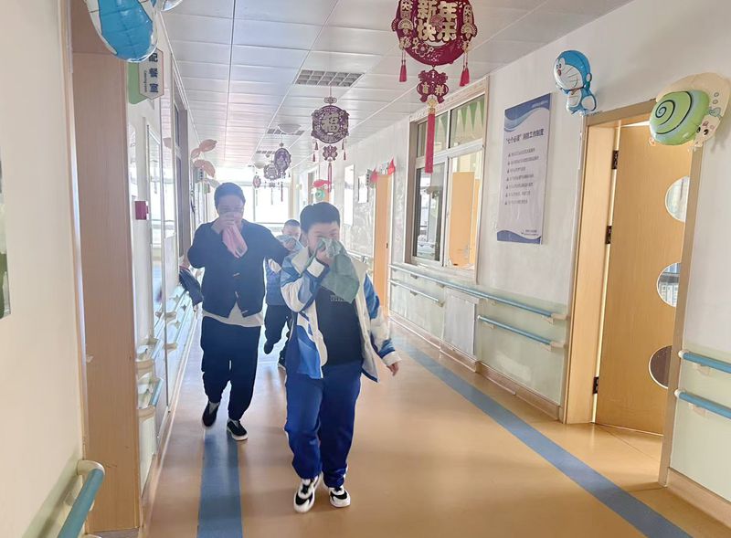 火情警报响起,全院现场工作人员根据《儿童福利院火灾应急预案》职责要求进行查验火情、报警、通信、现场指挥、初步灭火、协助儿童逃生(避难小屋)、医疗救助、引导消防车入场救火等消防演练。参与演练人员紧张有序进行全程演练,达到预期效果。