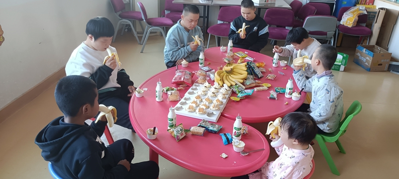 11月28日:威海市职业中等专业学校24服装1班捐赠牛奶、卫生纸、水果、食品和手工包,小邵子海鲜、喜乐烘焙捐赠即食食品、牛奶、大米、饼干、水果、洗衣粉和鸡蛋,苗女士捐赠牛奶和鸡蛋,邓永品捐赠菜,泰之诚佛牌捐赠纸巾、饼干和洗护用品。