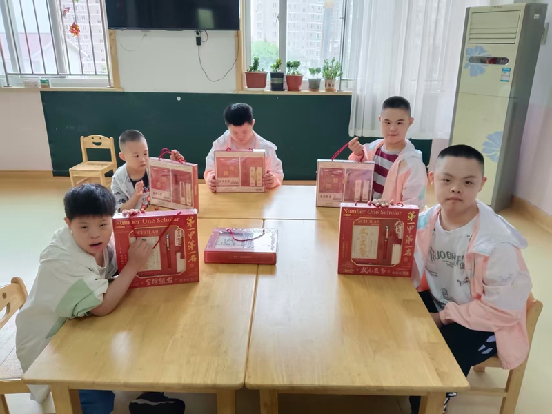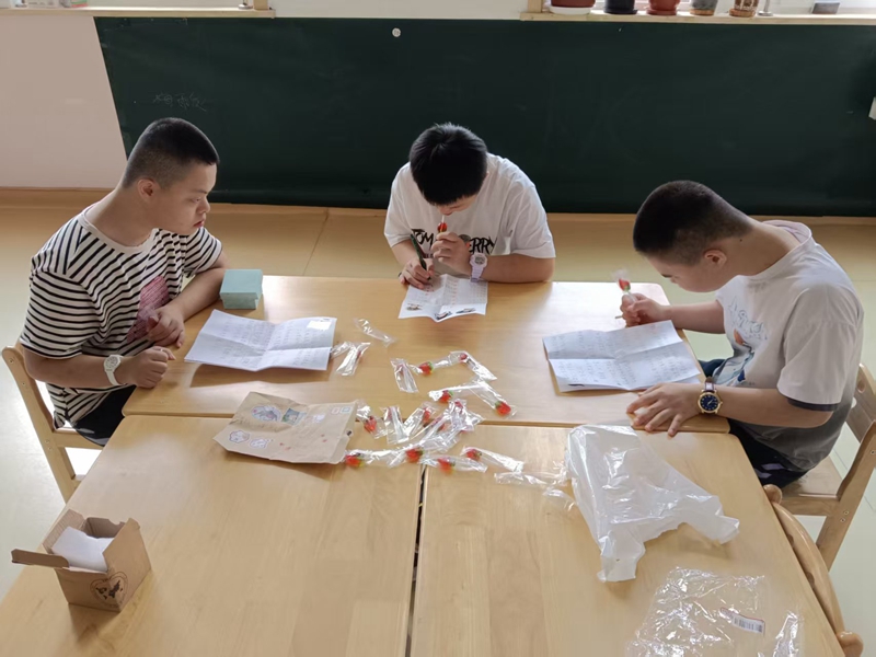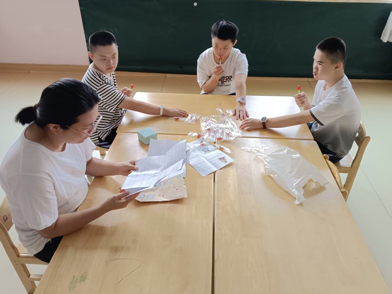 儿童收到手表、意面、糖果、洗手液等,并阅读爱心信件。
