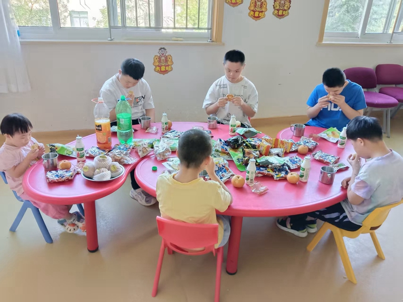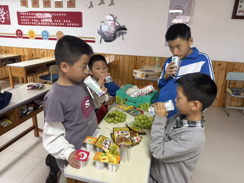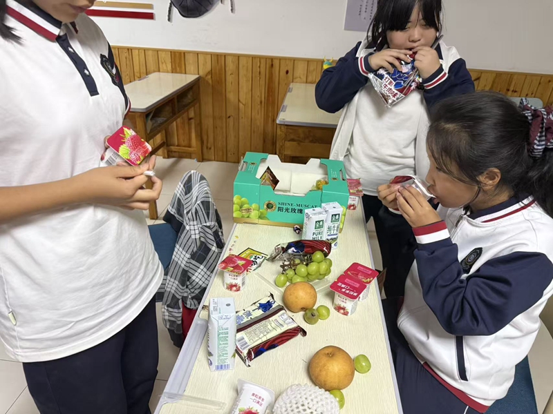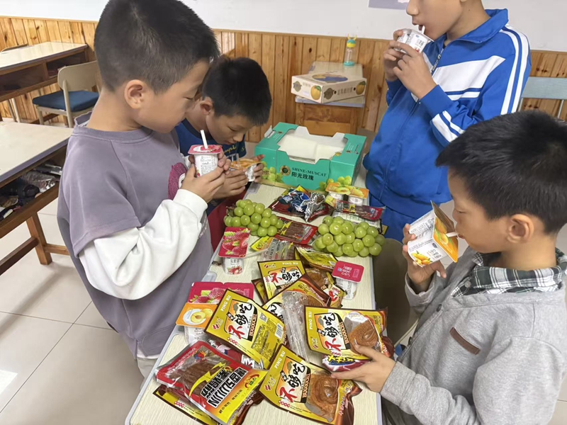 儿童加餐喝奶、酸奶、饮料,吃月饼、火腿肠、方便面、八宝粥、水果、零食等。