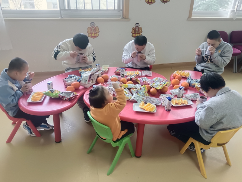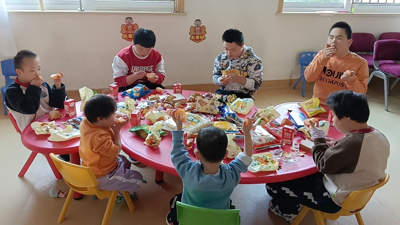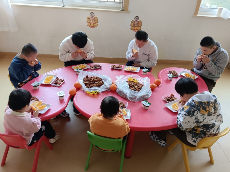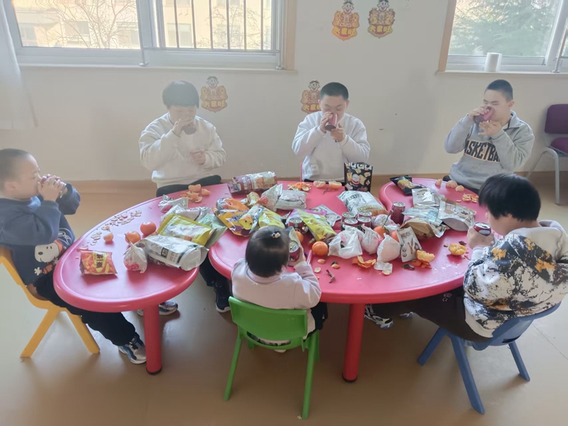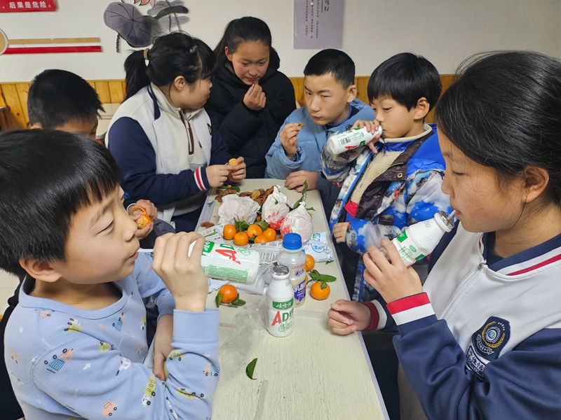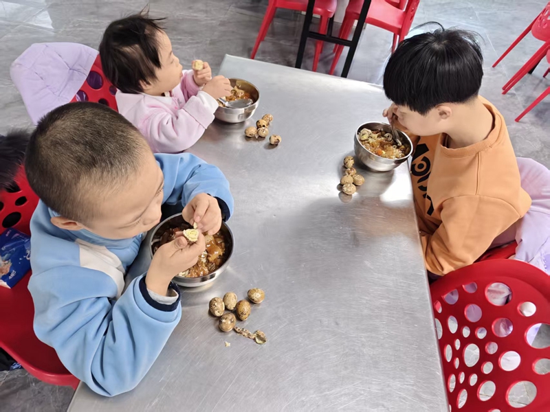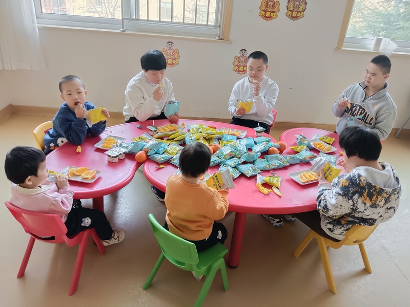 儿童加餐喝饮品、酸酸乳、奶,吃猪尾巴、年糕、八宝粥、水果、零食等。
