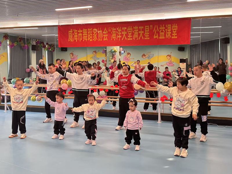 为检验“开门办院”共享课堂舞蹈课程教学成果,2026年1月4日,威海市儿童福利院携手市舞蹈家协会,在福利院新舞蹈室举办“海洋天堂满天星”共享课堂舞蹈成果汇报表演。福利院师生、舞协舞蹈老师与爱心志愿者齐聚一堂,以艺术之名共赴这场充满童趣与温情的元旦之约。