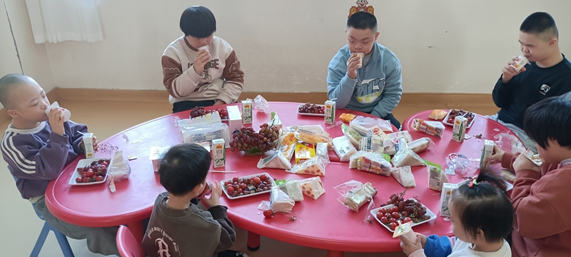 儿童加餐喝奶、饮品、酸酸乳,吃水果、罐头、面包、苹果干、零食等。