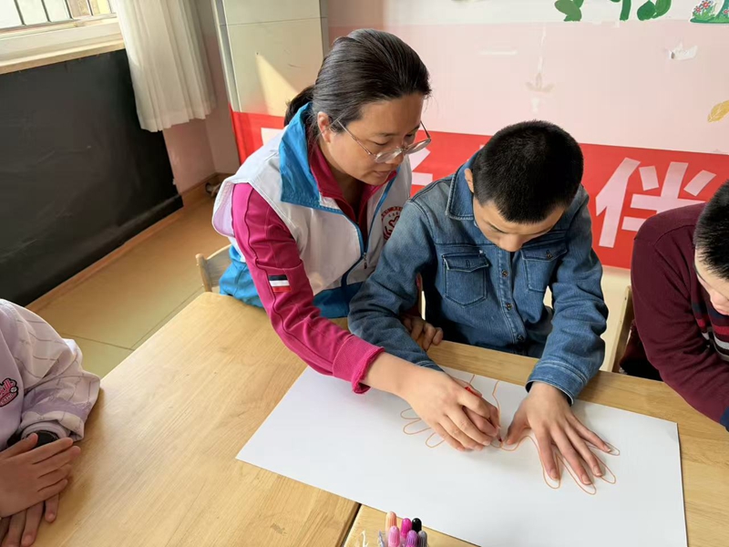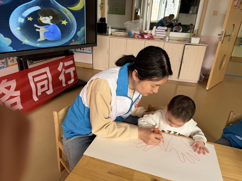 活动现场,志愿者们首先开展自闭症科普宣传,用通俗易懂的语言讲解相关知识,积极搭建起社会理解、接纳自闭症群体的桥梁,引导大家尊重、关爱“星星的孩子”。在互动环节,志愿者与孩子们亲密相伴,手把手指导孩子们拿起画笔,共同创作主题长卷画。孩子们尽情涂抹色彩,通过画作释放内心情绪,感受创作的乐趣。
